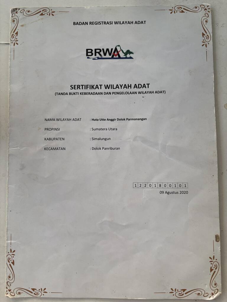 また2019年には、当時の環境林業大臣であるシティ・ヌルバヤが現地に訪問し、土地紛争の解決に向けて「慣習地登録協会(BRWA)」に登録するよう住民たちに提案した。BRWAは、複数のNGOにより設立された組織で、先住民族が主張する慣習地の存在を検証・認定し、独自のデータベースを作成することで、政府にその土地の認知を促すことを目的としている。その後、環境林業省から、先住民族に法的なステータスを与える枠組みである「村落林(Hutan Desa)」に申請するよう勧められた。村落林への申請の最初のプロセスとして、県政府から先住民族としての存在を認識してもらい、推薦状を発行してもらう必要がある。しかし、BRWAから慣習地の認定を受けていたにもかかわらず、現在までに推薦状を得ることはできていない。