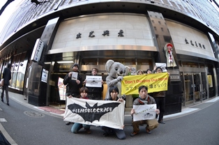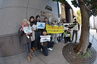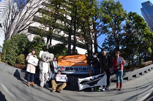熱帯林行動ネットワーク(JATAN)とフロント・ライン・アクション・オン・コール(FLAC)はレアード州有林の破壊に加担している国際協力銀行(JBIC)、伊藤忠、出光興産に事業の停止を要請して三社本社前にて1月8日(木)にバナーアクションをおこなった。