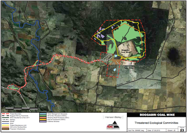 この州有林の一部に、絶滅危惧指定されているホワイト・ボックス・ガムウッドランドと呼ばれる森林生態系が含まれています。これらのうち、約2,000ヘクタールの固有種や絶滅危惧種が生息する草原や絶滅生態地域を含め、約5,000ヘクタールの天然林が現地企業であるホワイトヘブンの所有する二つの石炭鉱山と、イデミツ・オーストラリア・リソーシーズの所有するボガブライ石炭鉱山により段階的に皆伐されることが予定されています。これらの企業は日本とも深い関係を持っており、イデミツ・オーストラリア・リソーシーズは出光興産の子会社である一方で、ホワイトヘブンについては日本企業が25%の出資(伊藤忠:15%、電源開発:10%)を行っています。出光興産が作成した環境影響報告書において、こうした貴重な森林を伐採することで重大な影響があると認められていますが、オフセット・プロジェクトによって同等の価値を有する森林を保全することができれば、こうした重大な影響を埋め合わせ、長期的に絶滅危惧種が維持できるとの判断をしています。しかし、現地の研究者やNGOなどによれば、ニューサウスウェールズ州の規定と照らし合わせてみても、オフセットとして保全される地域は適切ではなく、この件をめぐる訴訟も起きています。
