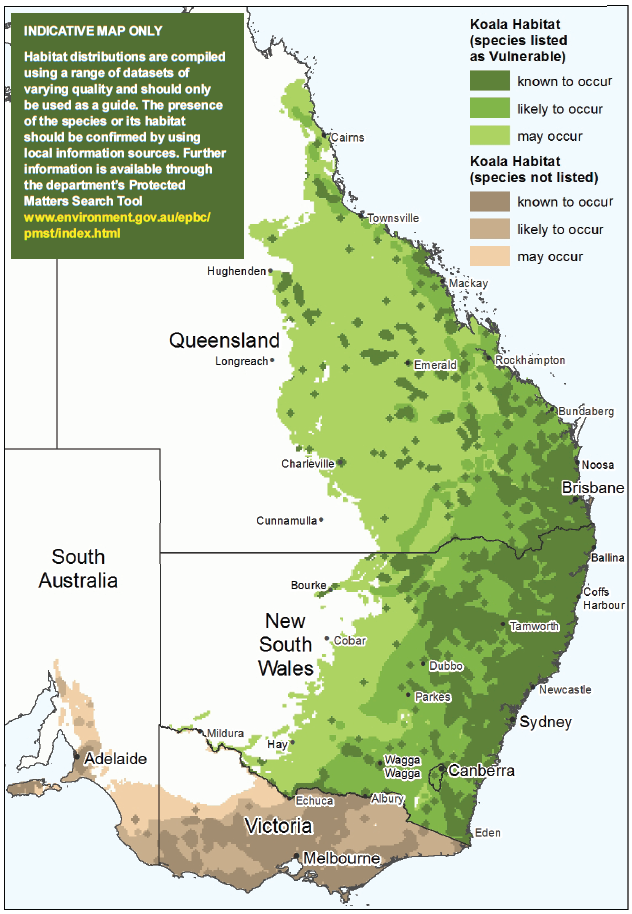 オーストラリアの固有種であるコアラは、オーストラリア東部の森林地域に生息していますが、天然林の減少にともないコアラの生息地も次第に失われ、1992年にはニューサウスウェールズ州で危急種(vulnerable)に指定され、連邦政府においても2012年より危急種に指定されています。州有林の伐採地域では、地域森林協定(Regional Forest Agreement:RFA)に基づいた操業が行われており、オールドグロース(Old Growth)林と定義された老齢樹を含む地域や、野生生物が利用する洞のある樹木や沢沿いの地域などは保護されることになっています。しかし、地域森林協定(RFA)による保護の対象となっていない地域にもコアラは生息しています。また、地域森林協定(RFA)による保護の対象下にある地域についても、伐採前の調査を実施して野生生物の巣穴となる洞が樹木にある場合はH(Habitat)の印を付け保護するようにしていますが、そもそもコアラは洞を必要とする動物ではなく、コアラが生息していることを確認するのは非常に困難であることから見過ごしている可能性もあり、現行の森林施業規則において十分な生態系配慮が行われているとは考えにくいと現地NGOは指摘しています。