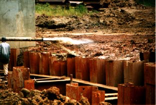 原料の木材供給用と思われる橋が新たに架けられ、パルプ洗浄用の取水口と排水口が作られ、工場そのものも完成しつつある。長びく不況や98年5月の政変も、ここには何の影響も及ぼしていないように見える。