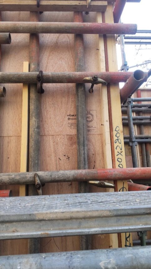 合板とは薄いベニヤ板(単板)を接着剤で奇数枚貼り重ねて一枚の板にしたもの。日本の住宅建設やビルの建築現場で大活躍しているポピュラーな建材のひとつです。ただ、完成された住宅やマンションのファサードからは隠されている日陰の存在です。コンクリート型枠用合板(コンパネ)や複合フローリングの台板といったところがおもな役どころです。
